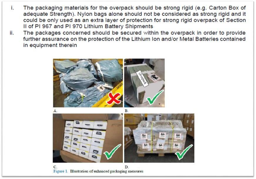 接到香港民航處(HK CAD)通知有關鋰離子/鋰金屬電池貨物新的包裝要求。由2021年9月18日起,針對PI967及PI970的外包裝只接受堅固紙箱,(其它物料-如膠袋,編織袋 及非堅固紙箱等都不接受)。倉庫如發現包裝不合符要求,會視作問題貨件,直接退回貴司處理跟進。