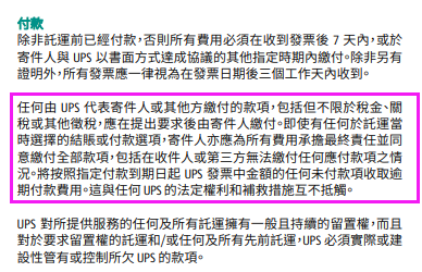 以下是UPS最新官網(wǎng)條款鏈接,鏈接相關條款規(guī)定詳見第30頁--付款 細則